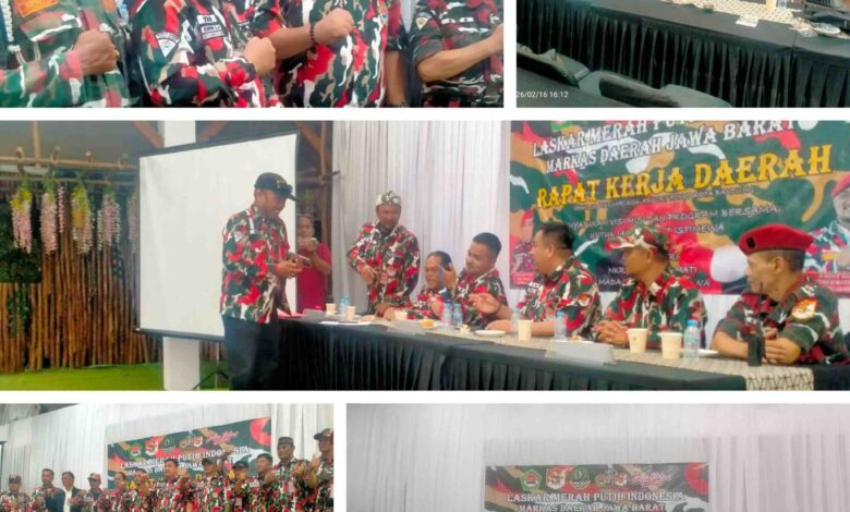 JENDELAPRIMA.COM,BANDUNG,- Laskar Merah Putih Indonesia ( LMPI ) Markas Daerah ( MADA ) Jawa Barat adakan Rapat Kerja Daerah ( Rakerda ) “Menyatukan Visi Misi Dan Program Bersama Untuk Mewujudkan Jawa Barat Istimewa” di Resort Ponyo Jalan Malabar No. 60 Kota Bandung Senin 16 Februari 2026